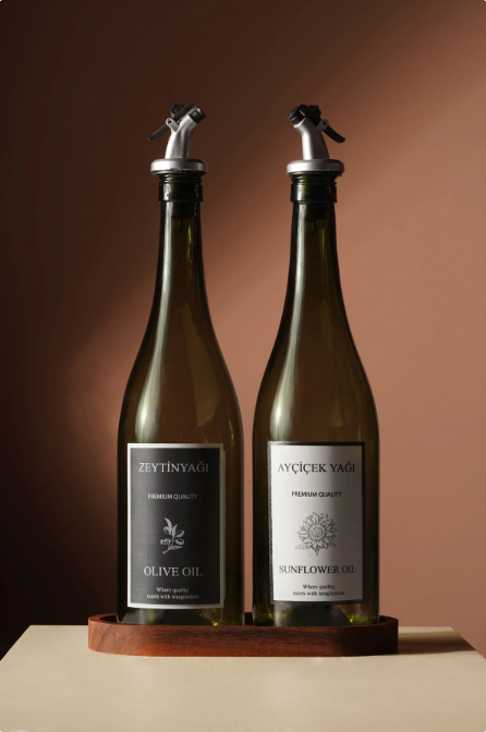 Fhilli Assos - Ahşap Standlı Damlatmaz Zeytinyağı ve Sıvıyağ Şişesi Seti (750 cc)