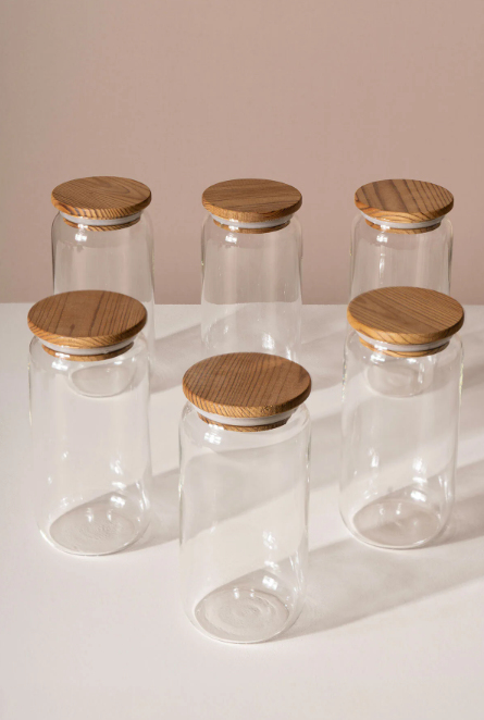 Fhilli Lizbon - 6'lı Çam Kapaklı Vakumlu Cam Saklama Kabı Baharatlık