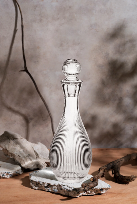 Fhilli Majestic Cam Şerbetlik / Karaf Sürahi, çizgili dokusu, el yapımı cam kalitesi ve modern formuyla sofralarınıza şıklık katar. İster serin içecekler ister ev yapımı şerbet ve limonatalar için kullanın; her sunumda dikkatleri üzerine çeker.