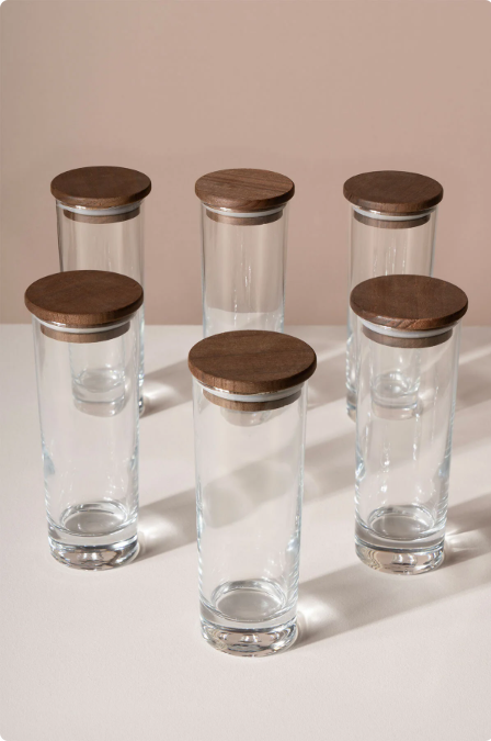 Set İçeriği: 6 Adet Cam Kavanoz + 6 Adet Tulip Ağacı Vakum Kapak + Etiket Hediyesi