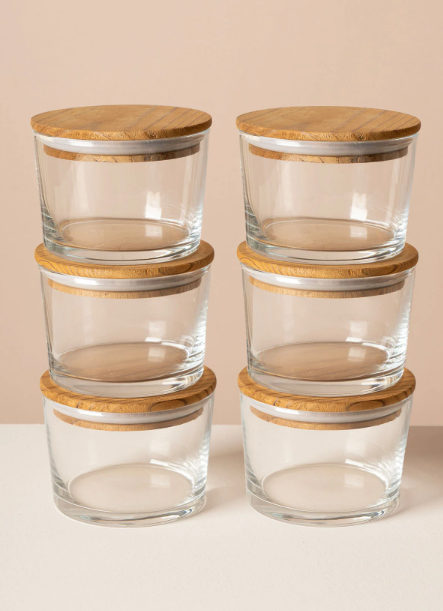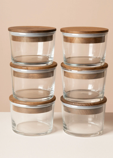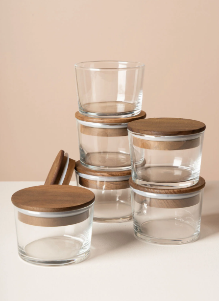 Fhilli Vetro – 6’lı Ahşap Vakum Kapaklı Cam Saklama Kabı 220 cc
