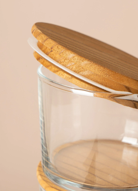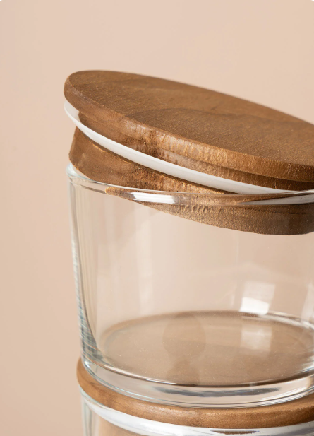 Fhilli Vetro - 6'lı Ahşap Vakum Kapaklı Cam Saklama Kabı 220 cc