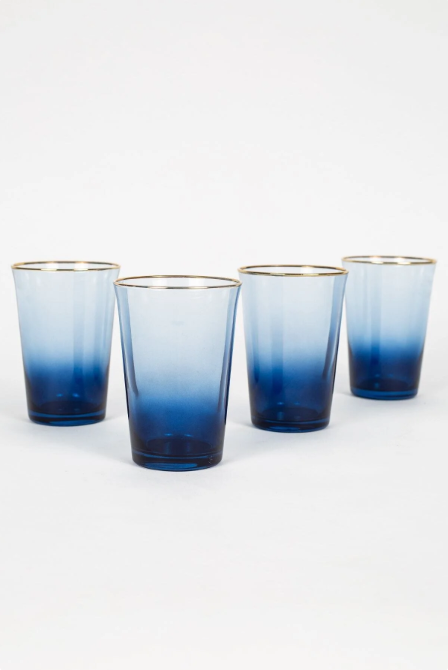Rakle Gold Iconic 4’lü Su Bardağı Seti Mavi 290 cc | Sofralarda Lüks ve Modern Zarafet
