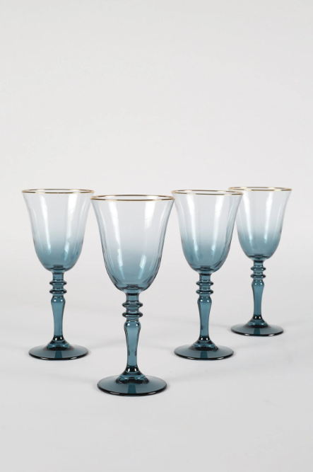 Rakle Gold Iconic 4'lü Su Kadehi Seti Petrol Mavisi 270 cc