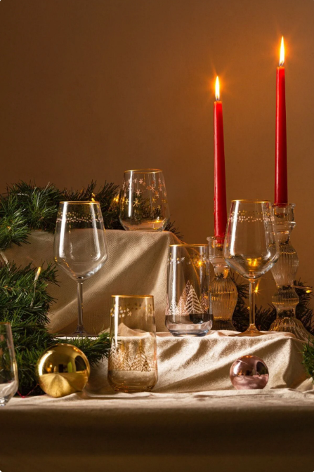 Şık formu ve yüksek cam kalitesiyle yılbaşı sofralarına zarif bir dokunuş kazandırır.